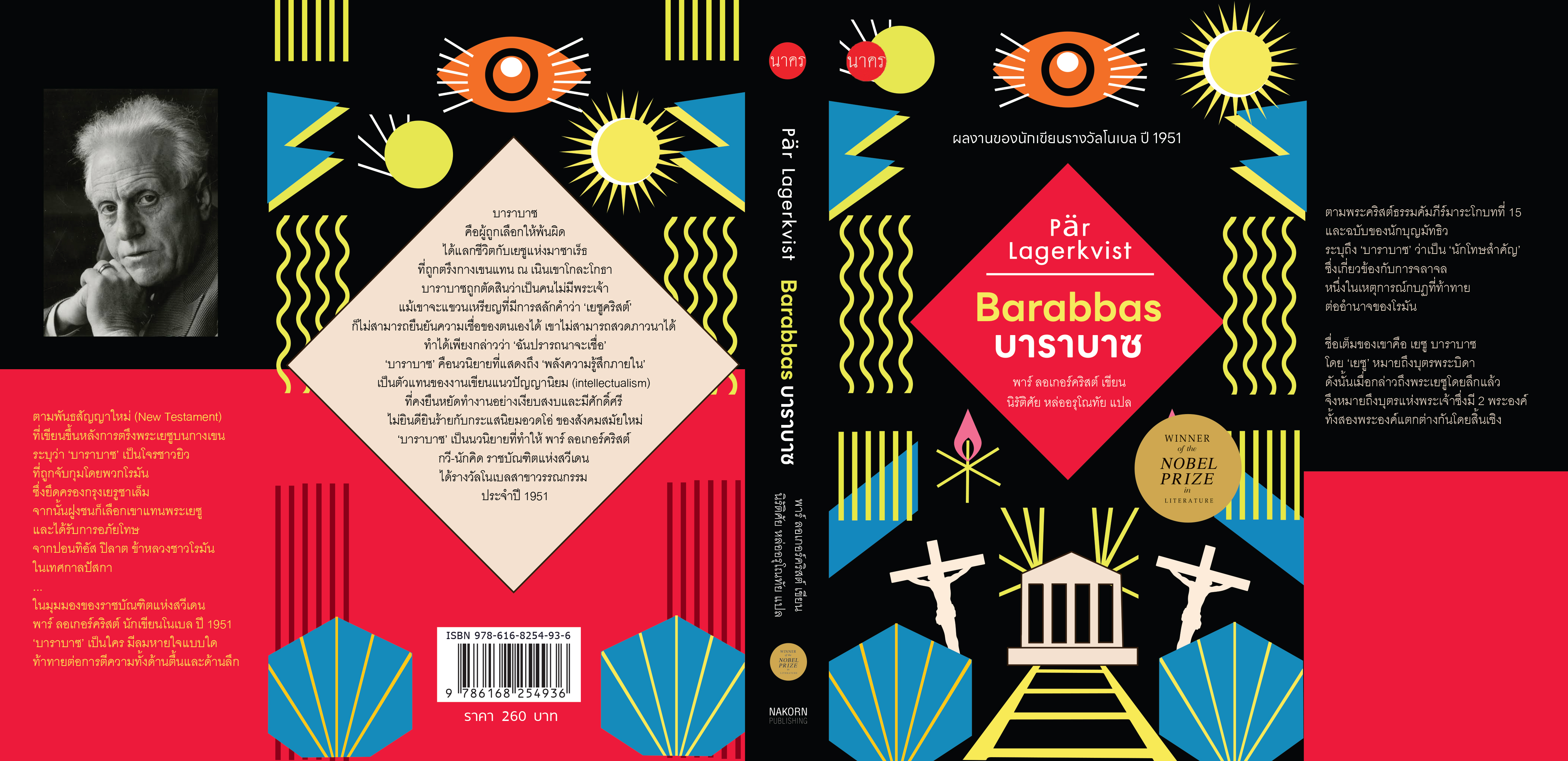 คนสอนพระคัมภีร์ที่ถูกตรึงบนกางเขนดูน่าเวทนามากกว่าอีกสองคน หน้าอกแบบบางไร้ขนกระเพื่อมขึ้นลงจากการหายใจติด ๆ ขัด ๆ ลิ้นเลียริมฝีปากแห้งผาก.. เนินเขาทุกด้านตกอยู่ในความมืดราวอาทิตย์ดับดวง ท้องฟ้าเกือบมืดสนิทโดยไม่ส่งสัญญาณให้ล่วงรู้ ชายผู้ถูกตรึงกางเขนส่งเสียงร้องออกมา – พระผู้เป็นเจ้า!! พระผู้เป็นเจ้า!! ทำไมพระองค์ถึงทอดทิ้งบุตรแห่งพระองค์เล่า!!. เที่ยงวันแท้ ๆ ทำไมท้องฟ้าจึงมืด ทหารทุกคนทะลึ่งตัวขึ้นจับอาวุธ พวกนั้นพูดกันเบา ๆ ด้วยอารามตกใจ แต่แสงสว่างค่อย ๆ แทรกผ่านมาอย่างช้า ๆ เหมือนยามรุ่งอรุณ ความมืดเกิดขึ้นเพียงชั่วอึดใจขณะที่เขาสิ้นลมหายใจ. พวกเขานำร่างคนตายลงจากกางเขน บาราบาซเห็นชัดถนัดตา พวกเขาประคองด้วยความระมัดระวัง ราวกลัวว่าจะทำให้ร่างนั้นบาดเจ็บแม้จะเพียงเล็กน้อย เขาปฏิบัติอย่างแปลกประหลาด ก่อนเคลื่อนขบวนไปวางศพผู้ตายลงอุโมงค์ศพ แล้วช่วยผลักก้อนศิลาขนาดใหญ่ปิดหน้าอุโมงค์ศพ ก่อนเดินทางกลับ. หญิงโสเภณีบอกว่าคนที่ตายเป็นคนสอนพระคัมภีร์ไบเบิล เขาตระเวนไปทั่วแดนเพื่อพยากรณ์อนาคตและแสดงปาฏิหาริย์ อีกคนบอกว่าเขาเคยทำนายว่าพระวิหารจะพังทลาย และเยรูซาเล็มจะถูกทำลายจากแผ่นดินไหว แผ่นดิน แผ่นฟ้าจะถูกเปลวเพลิงผลาญ คนที่สามบอกว่าเพราะเขาอยู่กับคนยากจน และให้คำสัญญาว่าพวกเขาจะได้ไปสู่อาณาจักรของพระเจ้า ไม่เว้นแม้แต่หญิงแพศยา ...นั่นน่าขบขัน แต่มันจะเป็นเรื่องวิเศษ-หากทำได้จริง. “บาราบาซ” นวนิยายรางวัลโนเบล ปี 1951 (ปกอ) • ปกปีก 234 บาท (ราคาปก 260 บาท) ติดต่อ สำนักพิมพ์นาคร ![]() ![]() ![]() ![]() ![]() ![]() |